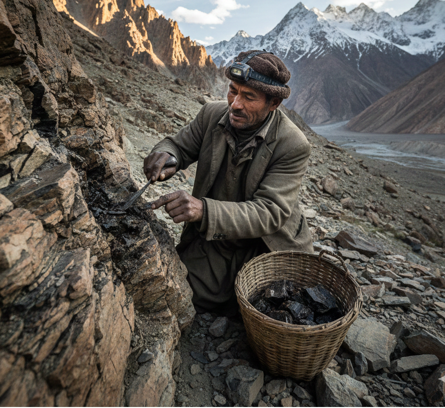From Gilgit’s mountains, shilajit oozes from rock layers, collected carefully to preserve its natural strength.